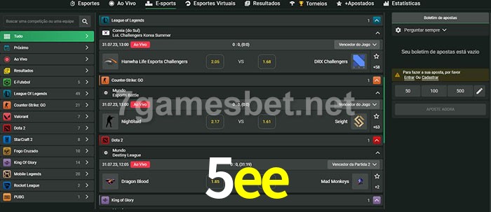 O 5ee oferece uma grande seleção de opções de apostas em e-sports com probabilidades competitivas